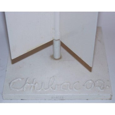 Technique : Sculpture en fer laqué blanc avec inscription Chubac 02